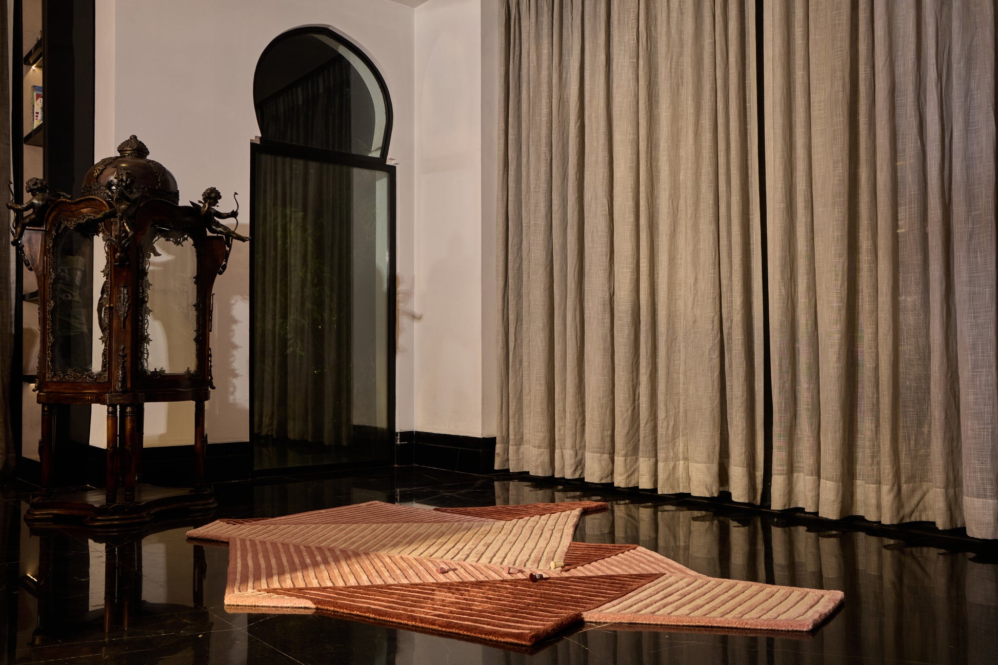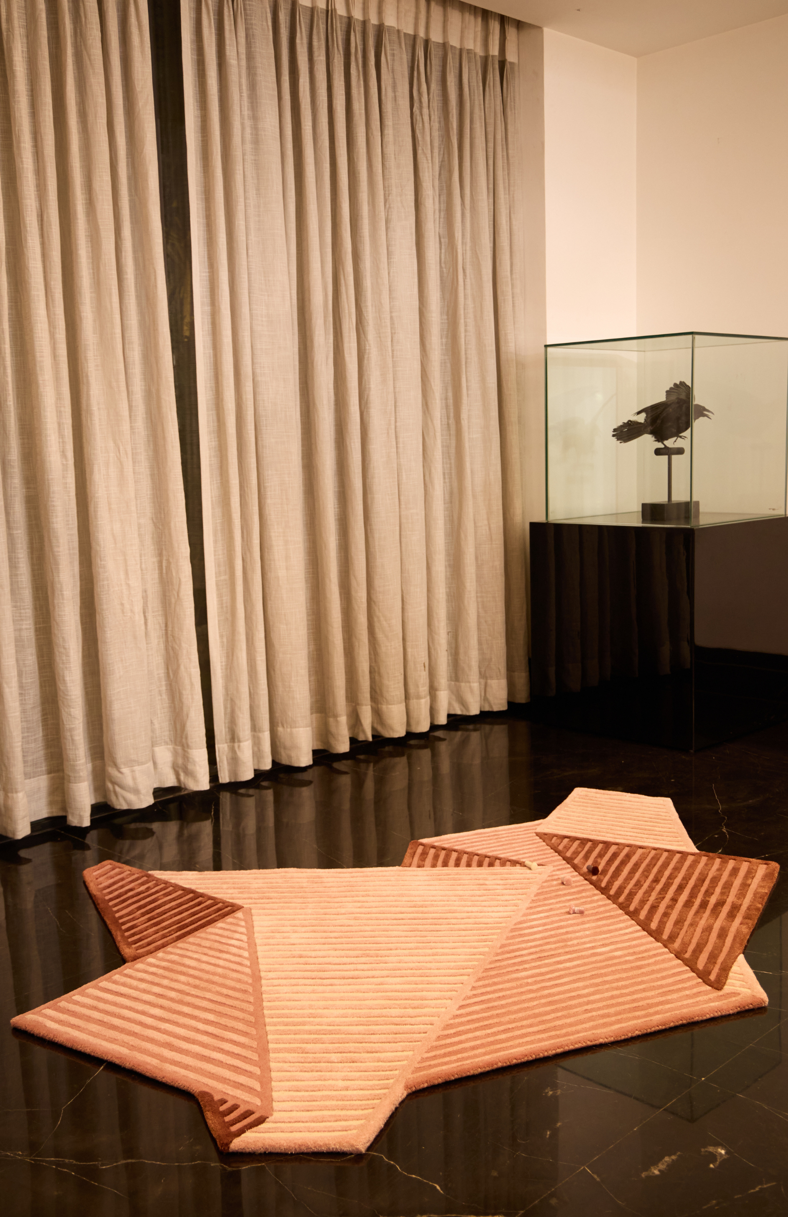 Origyn plays with perception, mimicking folded layers in a mirage-like design that feels both sculptural and fluid. Inspired by the precision of origami, its geometric forms and rich textures bring dynamic elegance to any space, blurring the line between art and functionality.